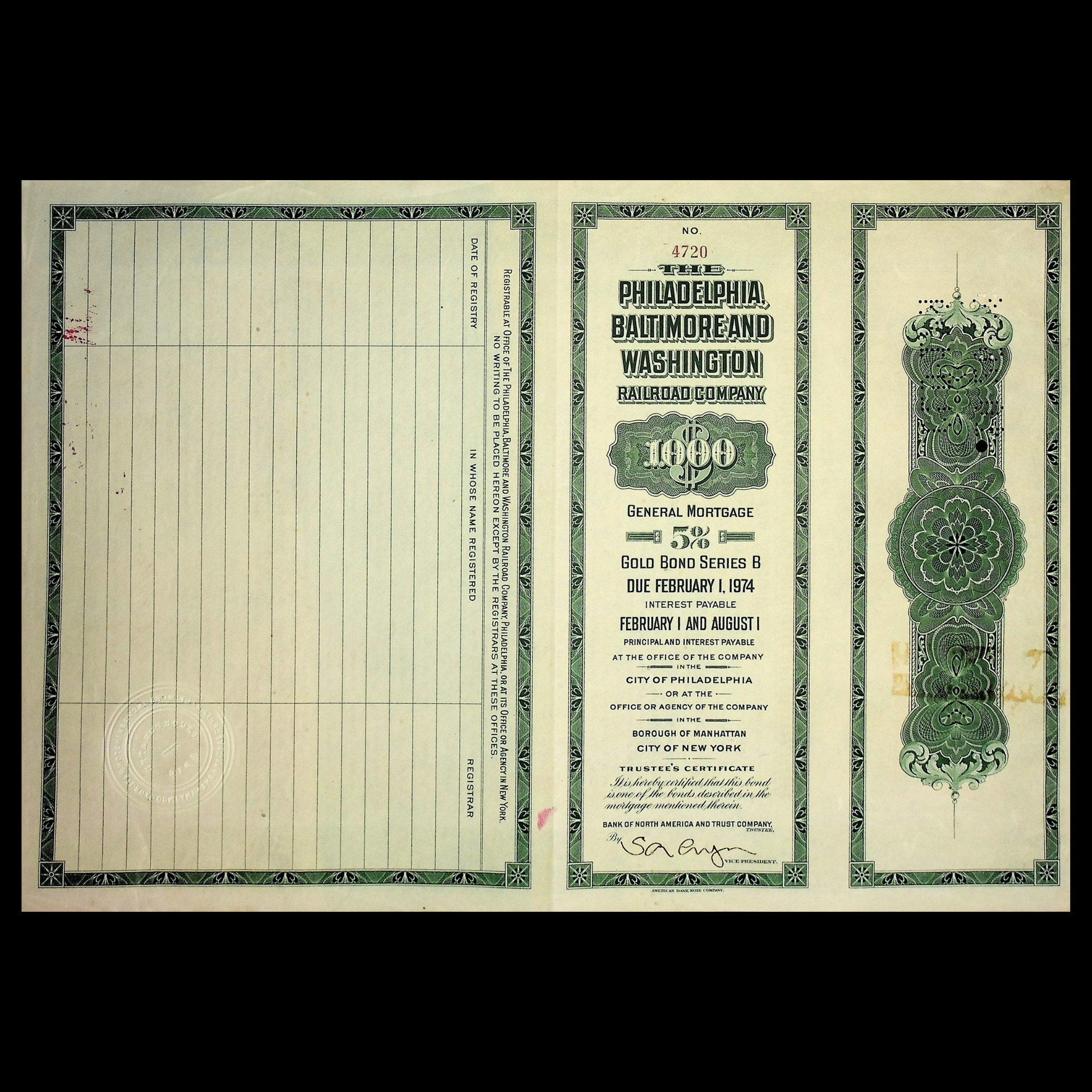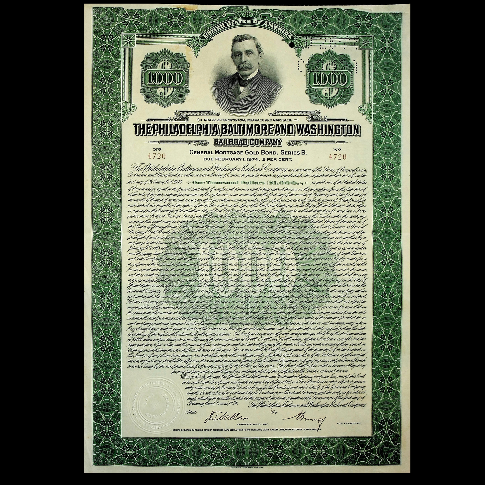 The Philadelphia, Baltimore and Washington Railroad Company Gold Bond from 1924