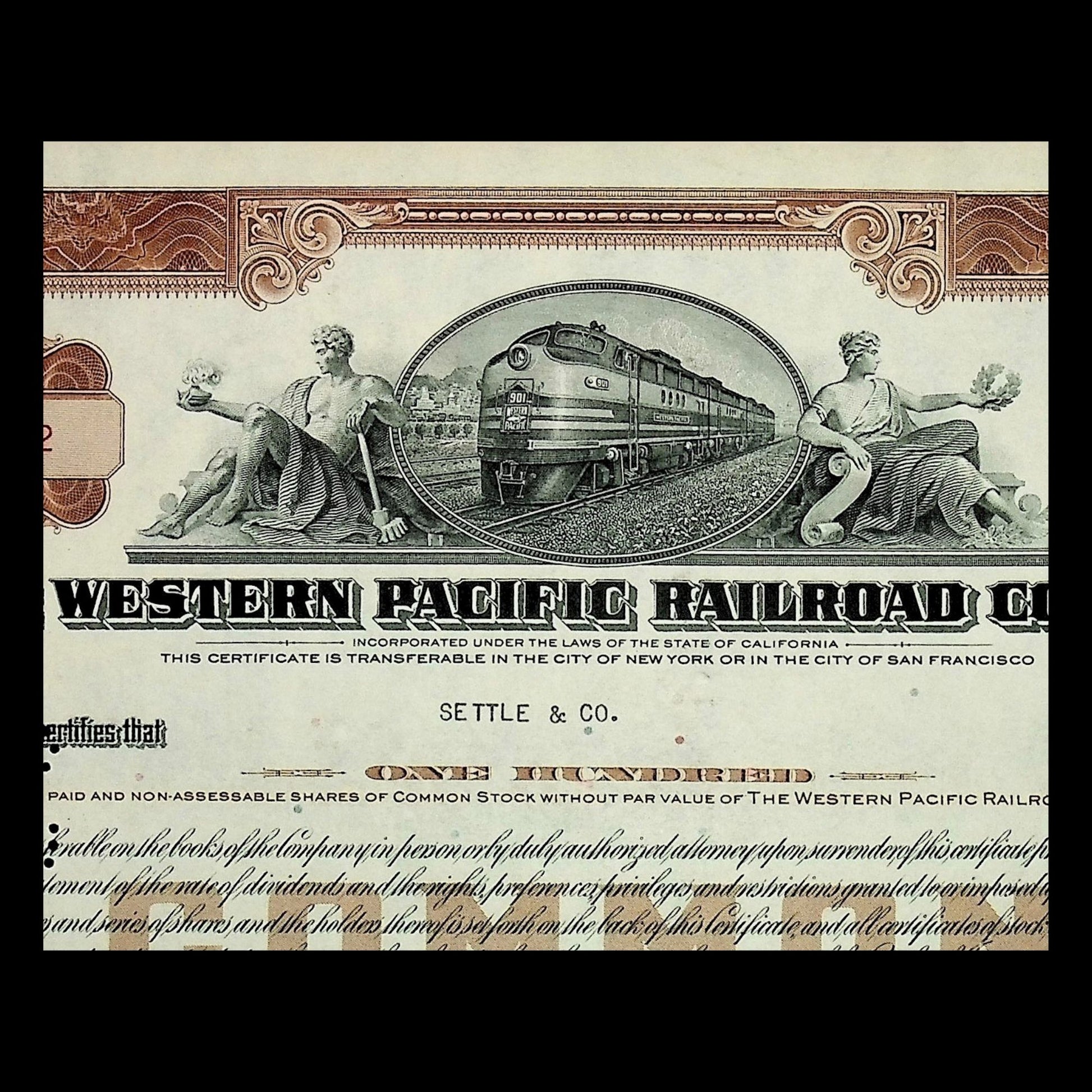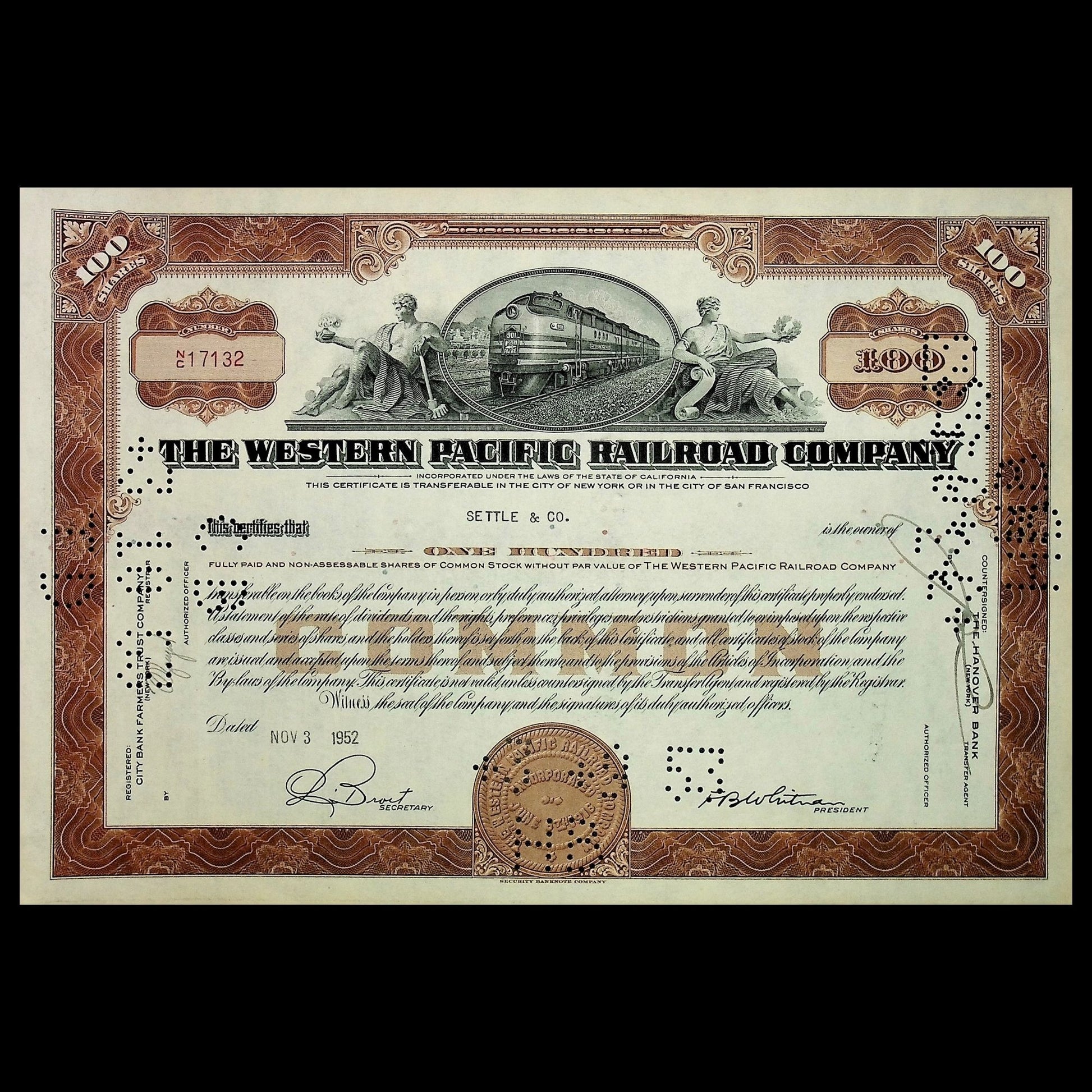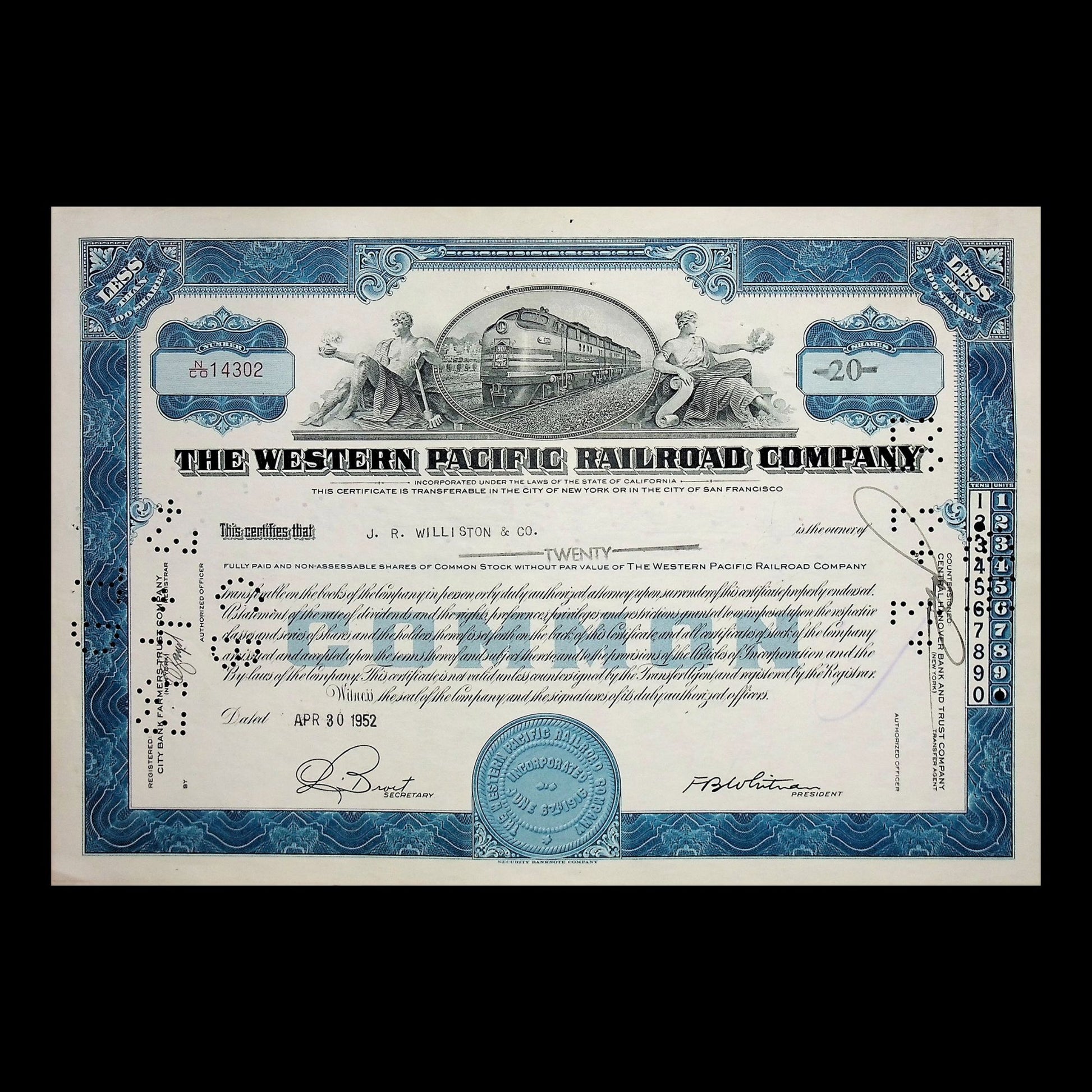 The Western Pacific Railroad Company Stock Certificate from 1950s