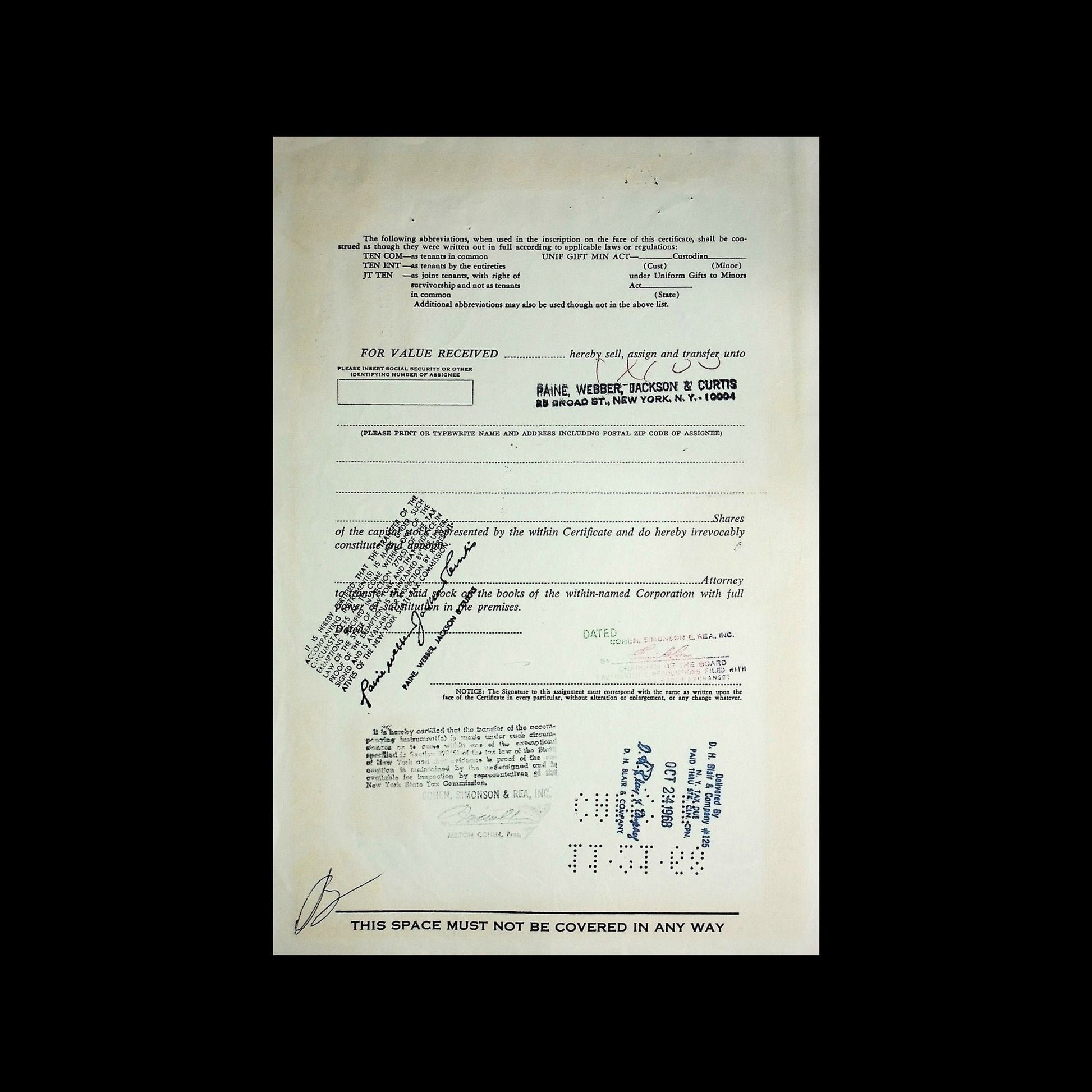 Trans-Beacon Corporation (Howard Hughs Movie Theaters) Stock Certificate 1960s