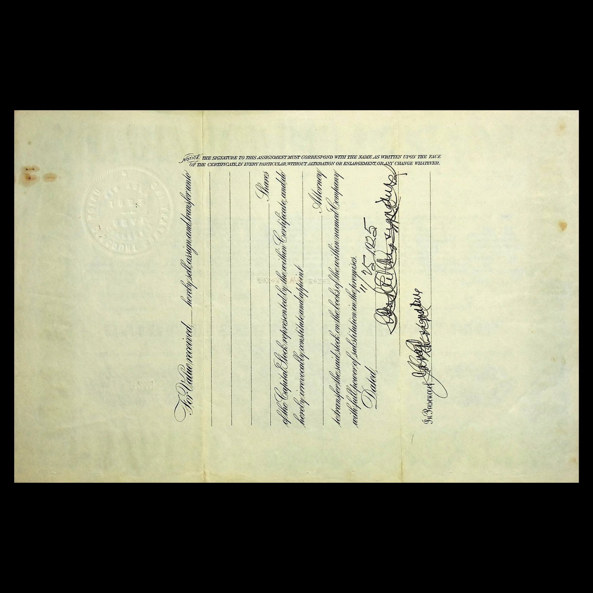 Paper quality: Stock certificates were printed on a variety of certificate paper dating back to the mid 1800s. Most of these vintage collectable certificates have signs of used & wear , cancellation holes, pencil / pen writing, stamps, staples, adhesives, slight rips, missing coupons and other features.