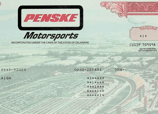 Penske Motorsports 股票证书 - 以赛道为特色