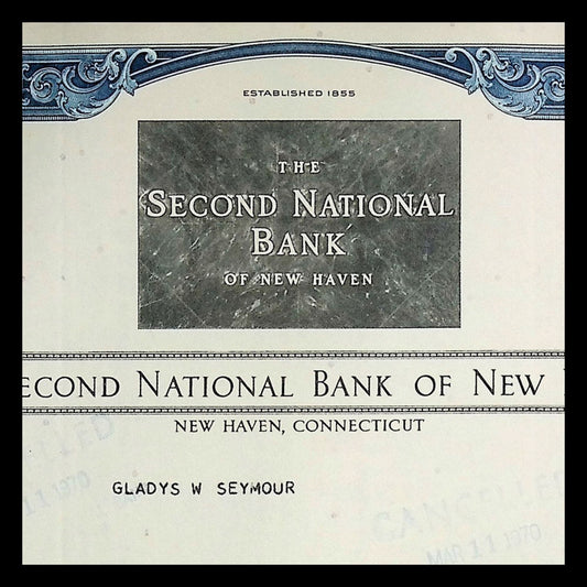 The Second National Bank of New Haven Stock Certificate from 1960s
