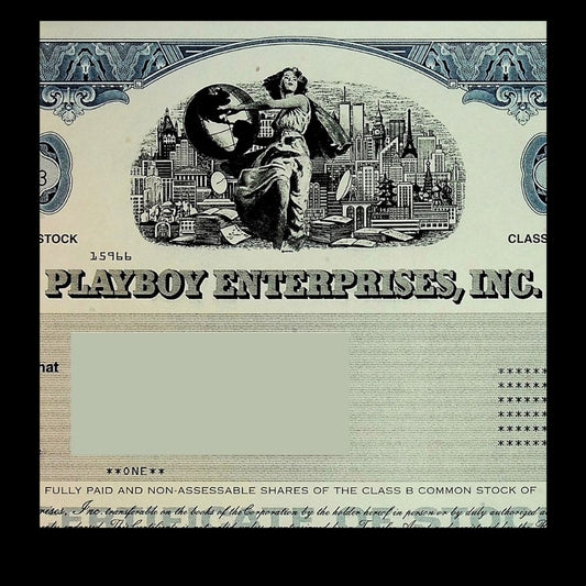 Playboy Stock Certificate from 2010 Twin Towers with Hugh Hefner Printed Signature