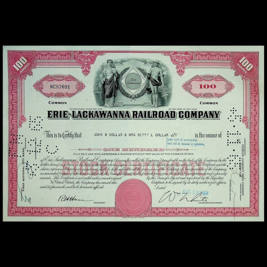 20 世纪 50 年代匹兹堡和伊利湖铁路公司股票证书