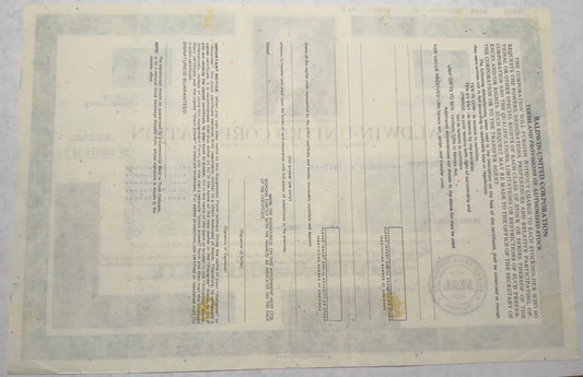 Baldwin-United(钢琴公司,现为 Gibson 所有)股票证书
